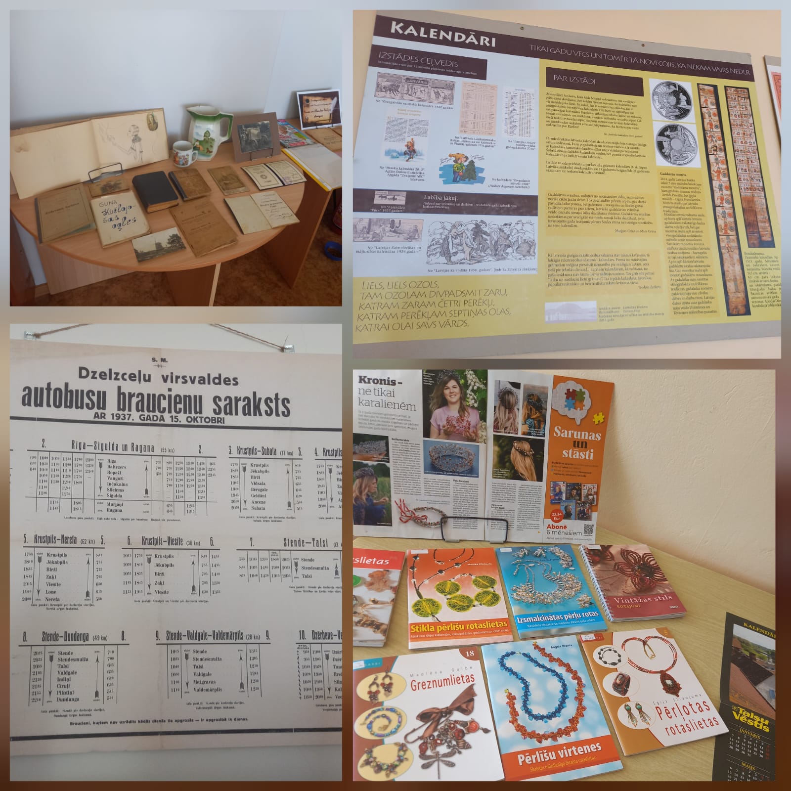 Bibliotēkā skolēni aplūkoja 4 izstādes, kas saistītas ar tēmām, kas tiek apgūtas skolā gan klases stundās, gan sociālo zinību un vēstures, gan latviešu valodas un  matemātikas, kā arī dizaina un tehnoloģiju stundās, tās saistītas gan ar mākslu, skaistumu un radošumu, gan ar skaitļiem, gan eksponātu īpašnieku personīgo pieredzi un informāciju, gan vēsturiskiem notikumiem. Skolēni bibliotēkā iepazina šādas izstādes: