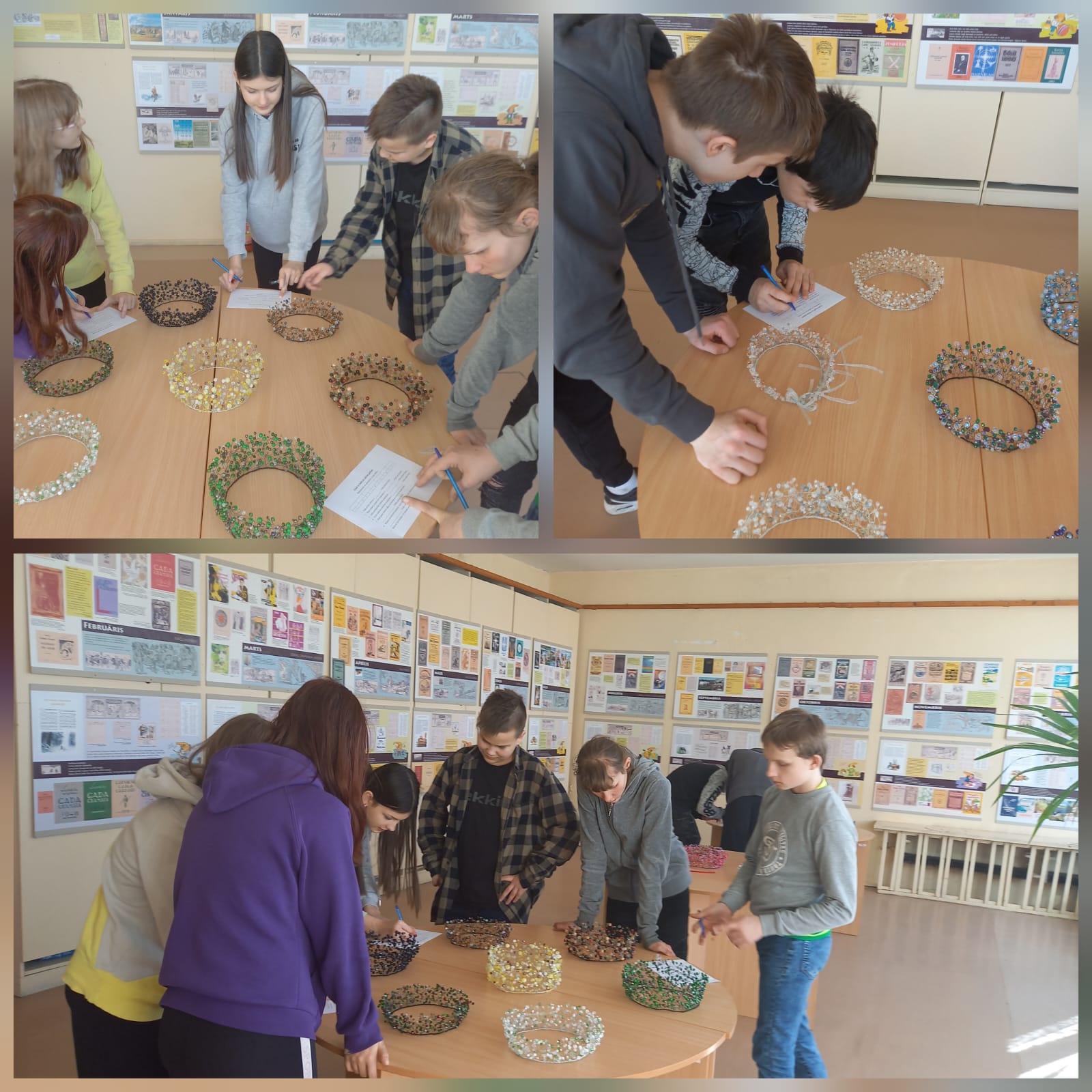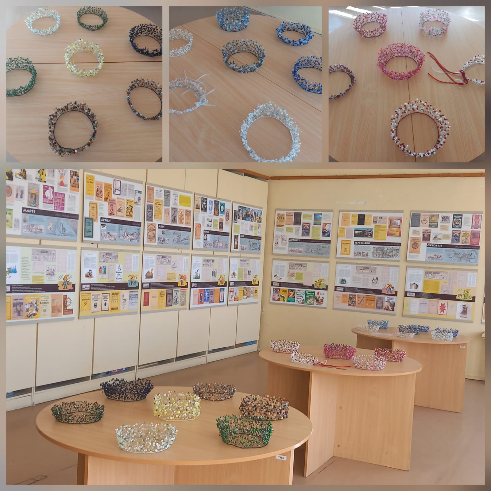 • Kroņu meistares Artas Liepiņas darinātie kroņi (skolēni tos varēja pat ļoti uzmanīgi aptaustīt, pielaikot, varēja izlasīt žurnālā interviju ar kroņu autori, kā arī iepazīt literatūru par kroņu darināšanu).