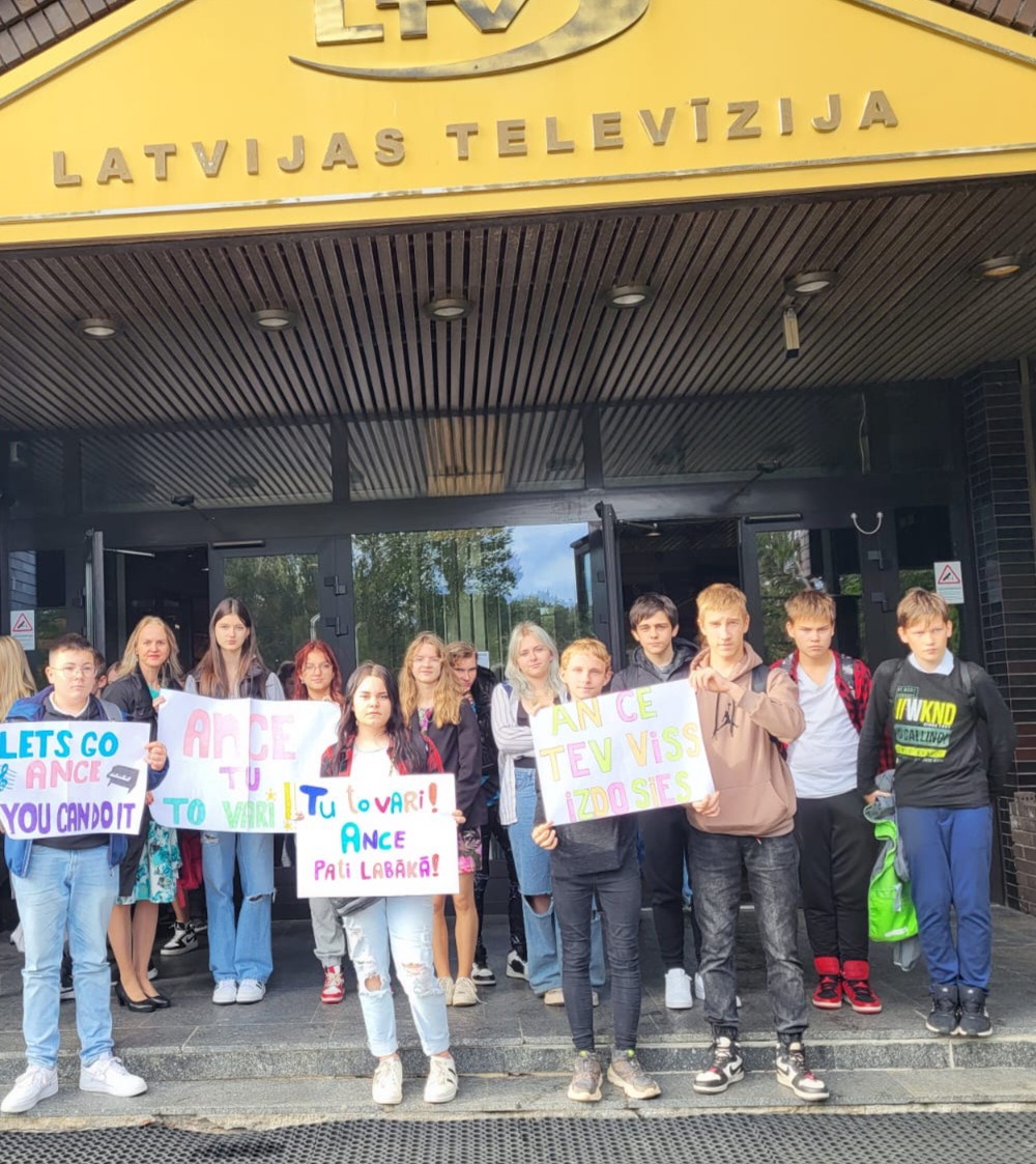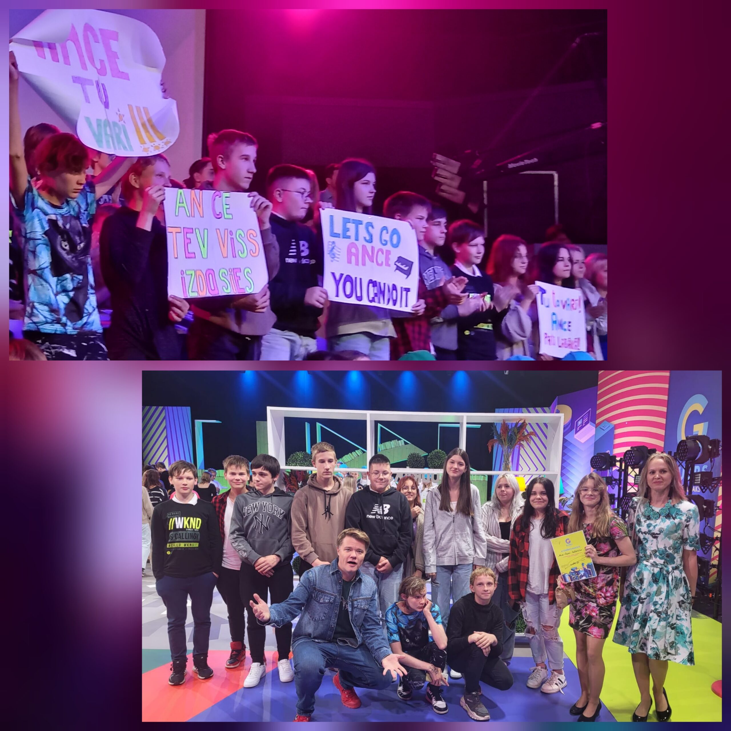 Pēc ekskursijas 7.a klases devās uz Latvijas Televīziju, kur Ance Enija Salcēviča piedalījās/spēlēja raidījumā „Gudrs, vēl gudrāks”. Šo raidījumu LTV1 varēs vērot 10.novembrī.