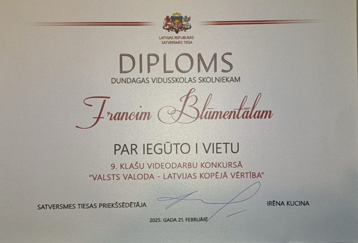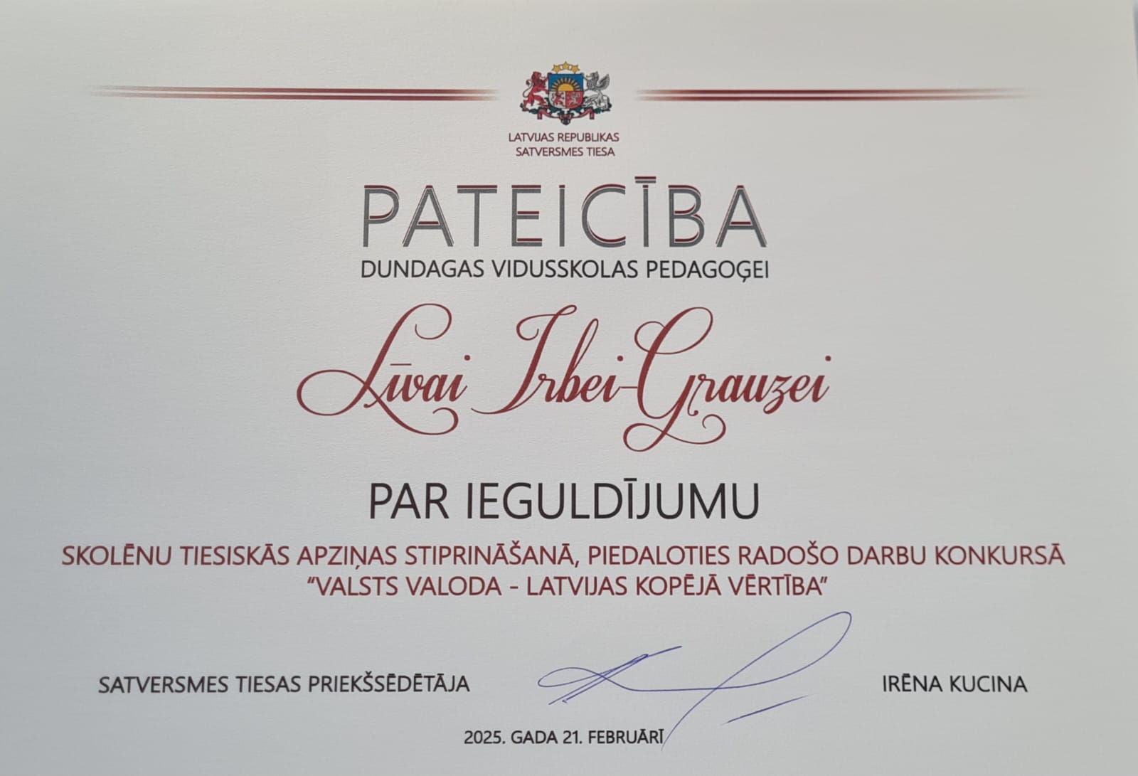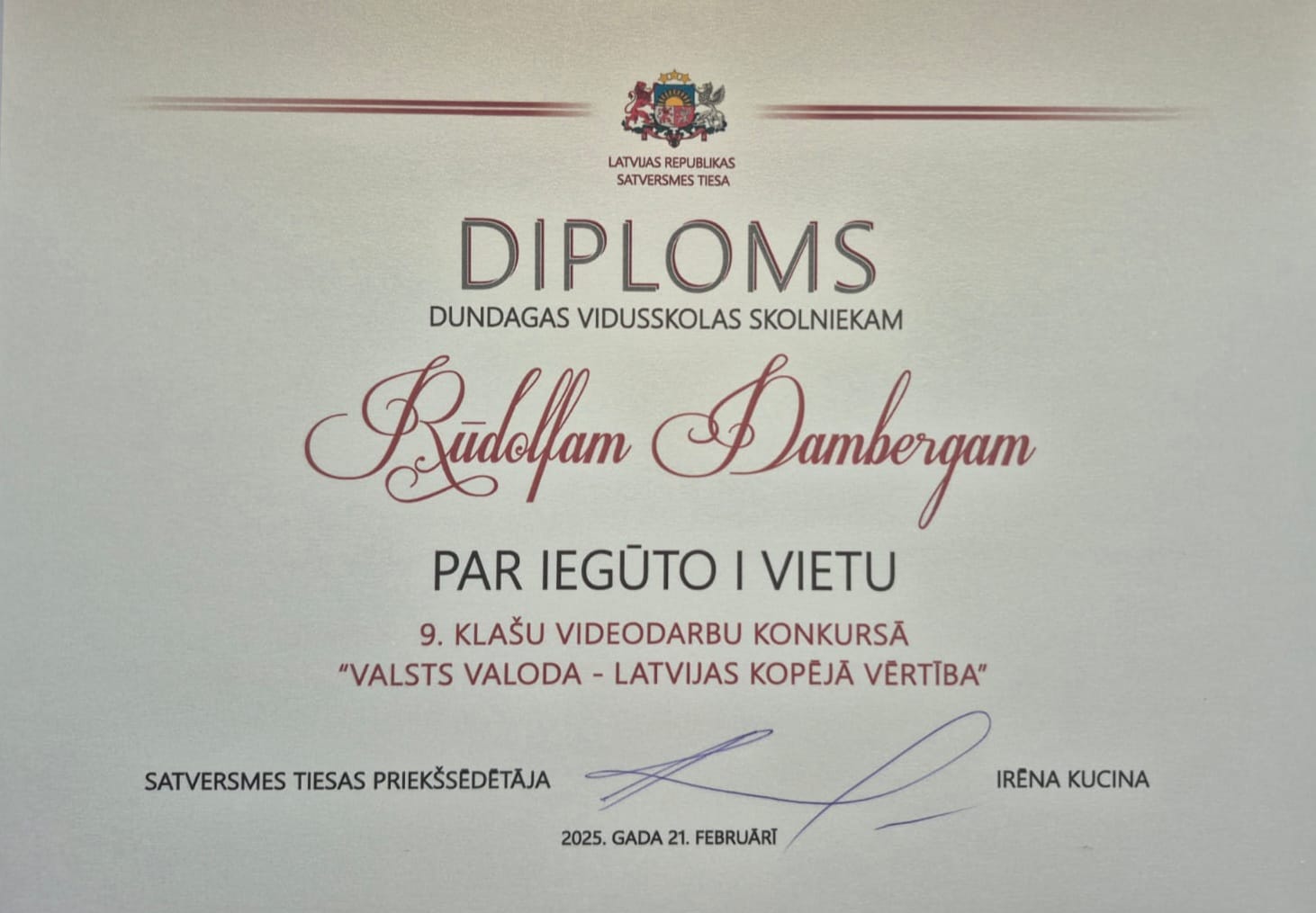 2025. gada 21. februārī Satversmes tiesas astotā skolēnu radošo darbu konkursa “Valsts valoda – Latvijas kopējā vērtība” svinīgajā apbalvošanas ceremonijā tika godināti uzvarētāji, laureāti un pedagogi.