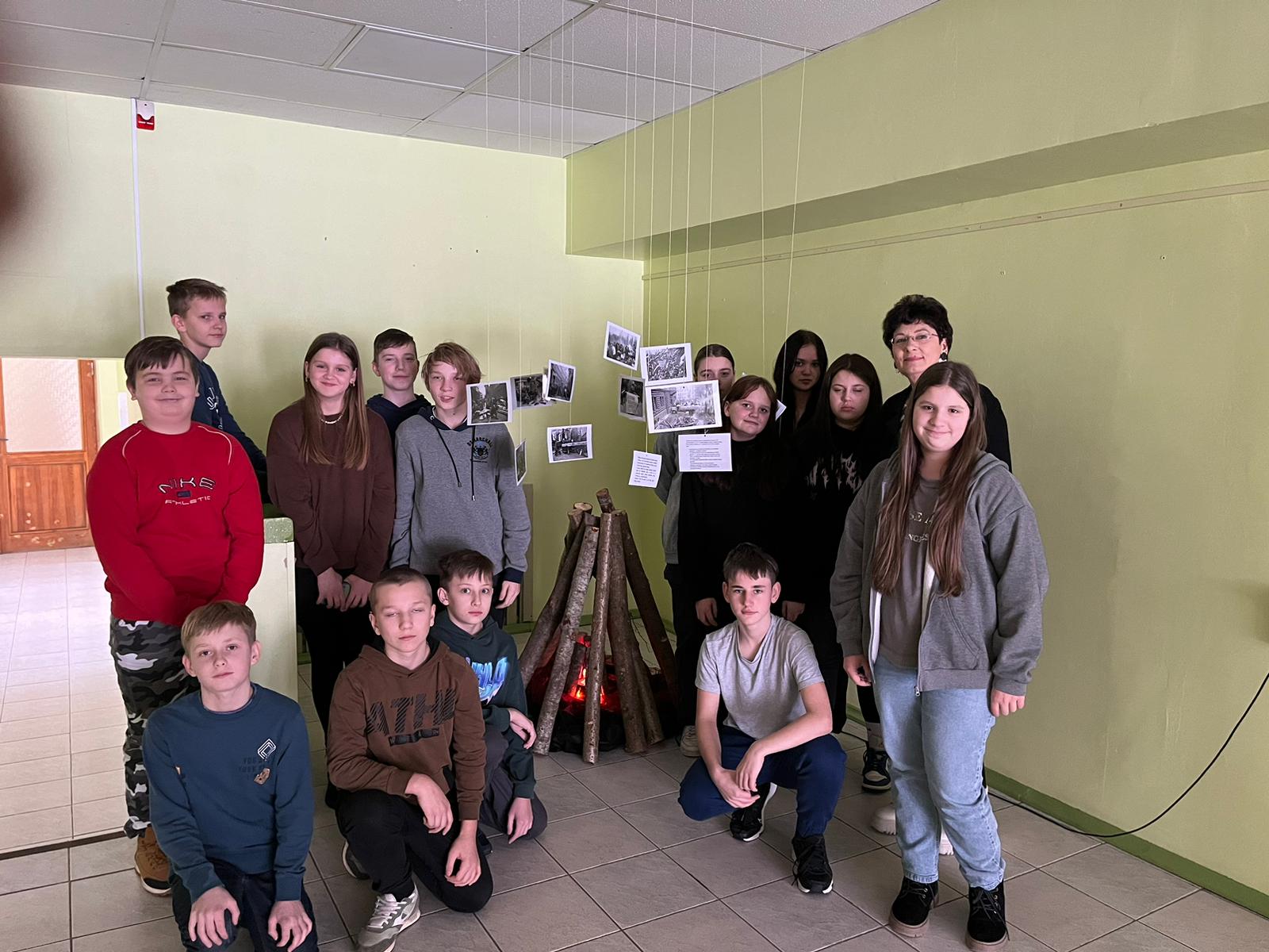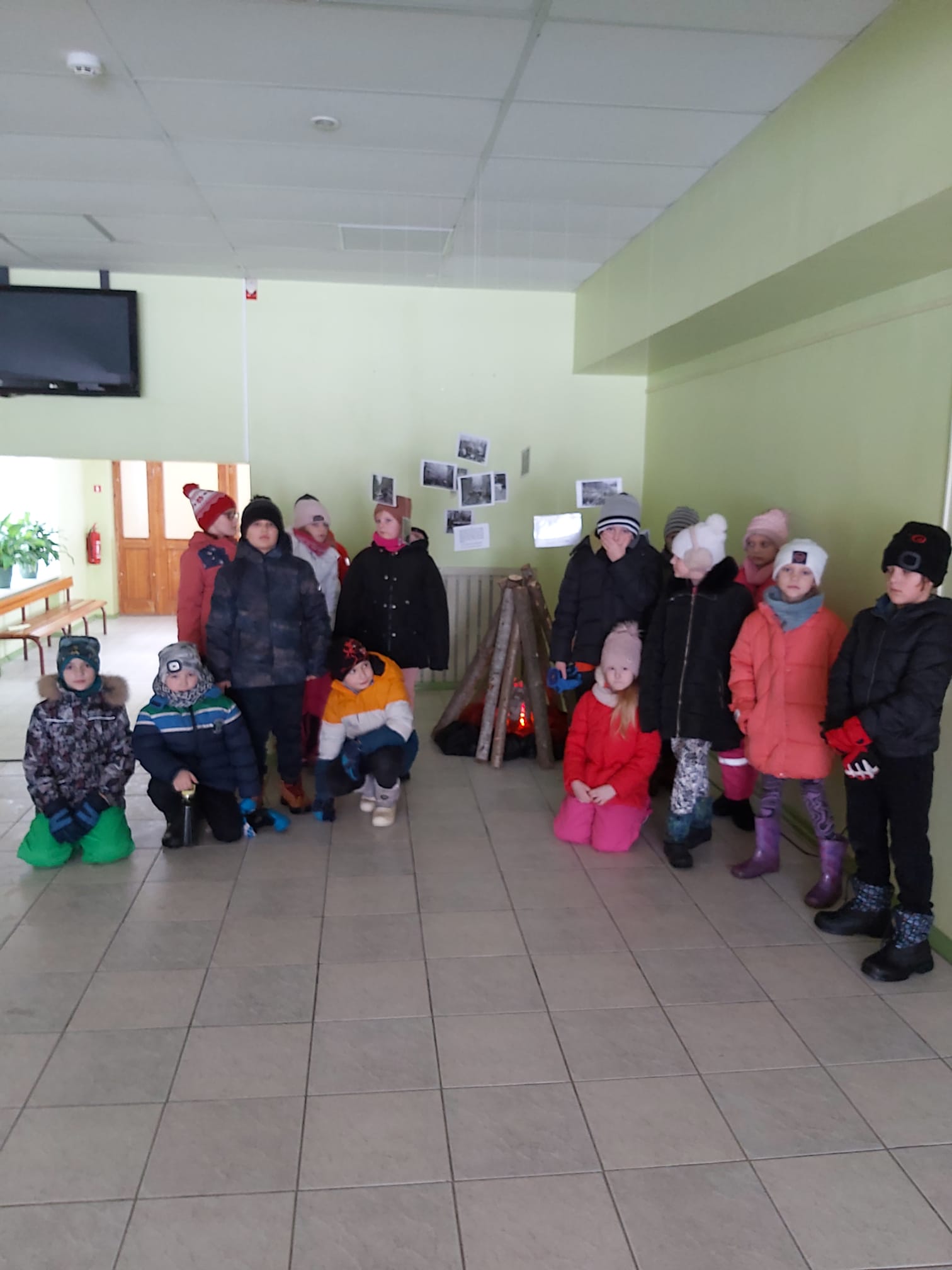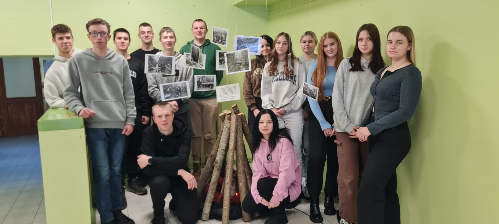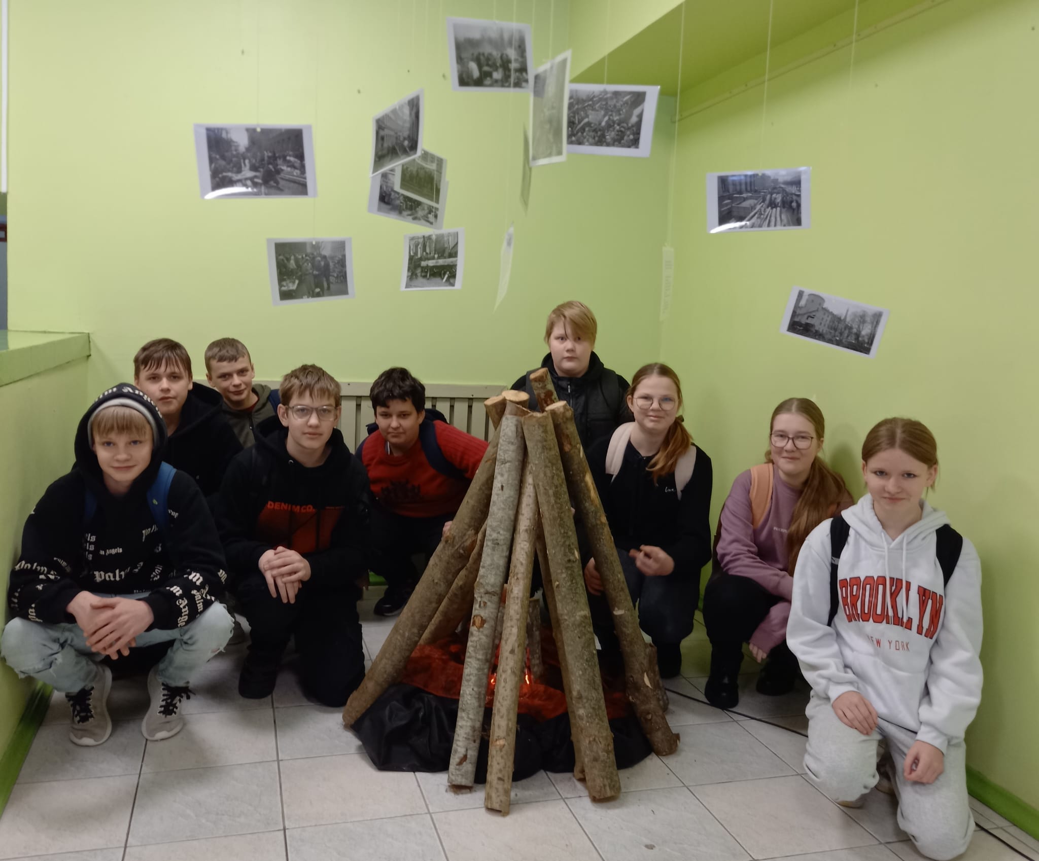 Skolas foajē ir apskatāma instalācija ar simbolisku ugunskuru “Barikāžu laiks”