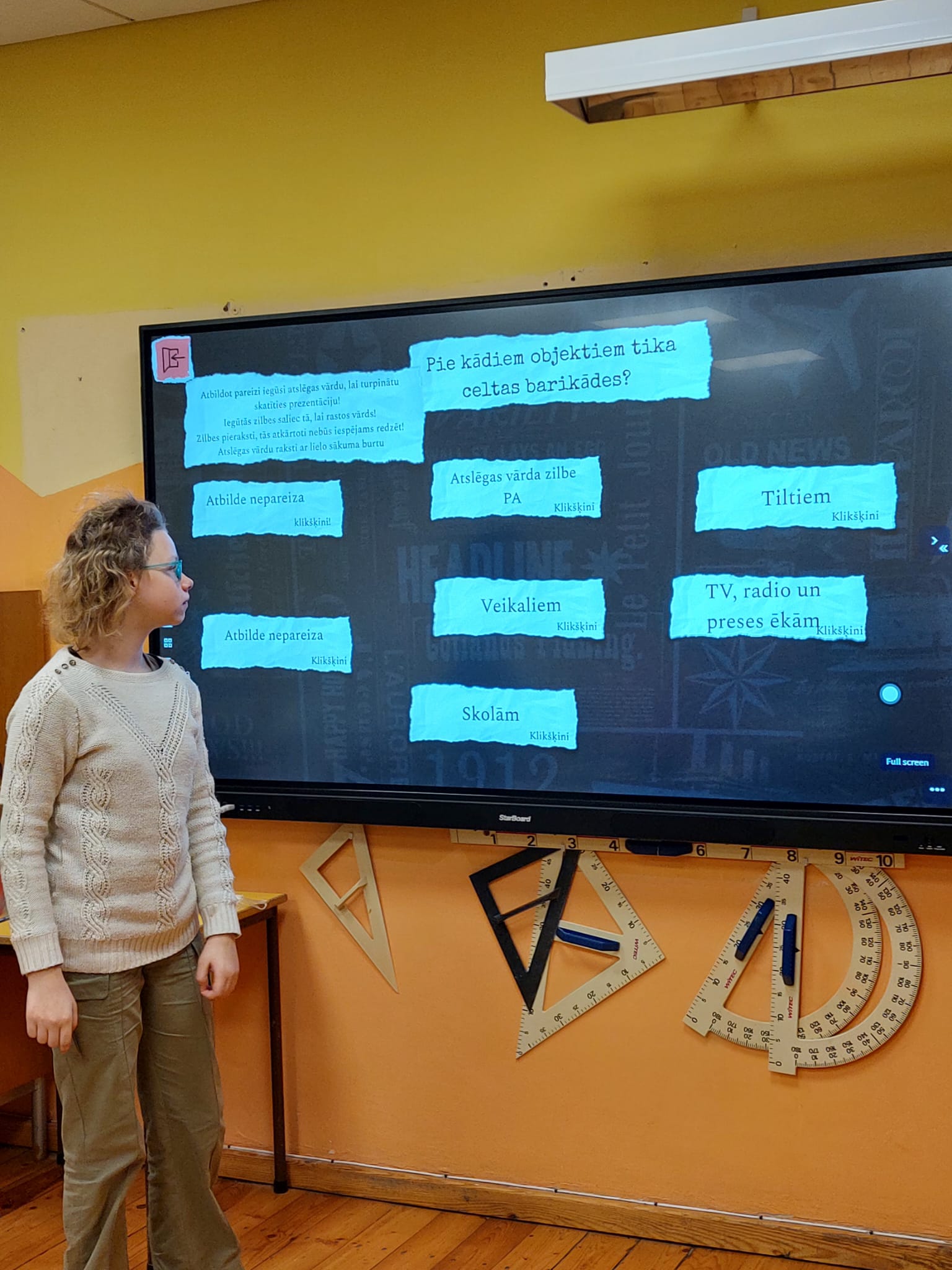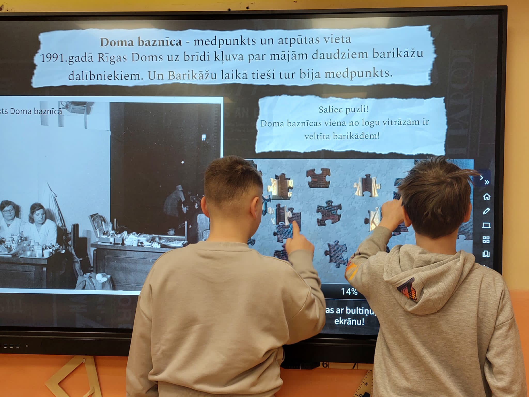 Kādā klases stundā piedalījās un dalījās atmiņās skolēna tētis, kurš pats ir bijis Barikāžu laika aizstāvis.