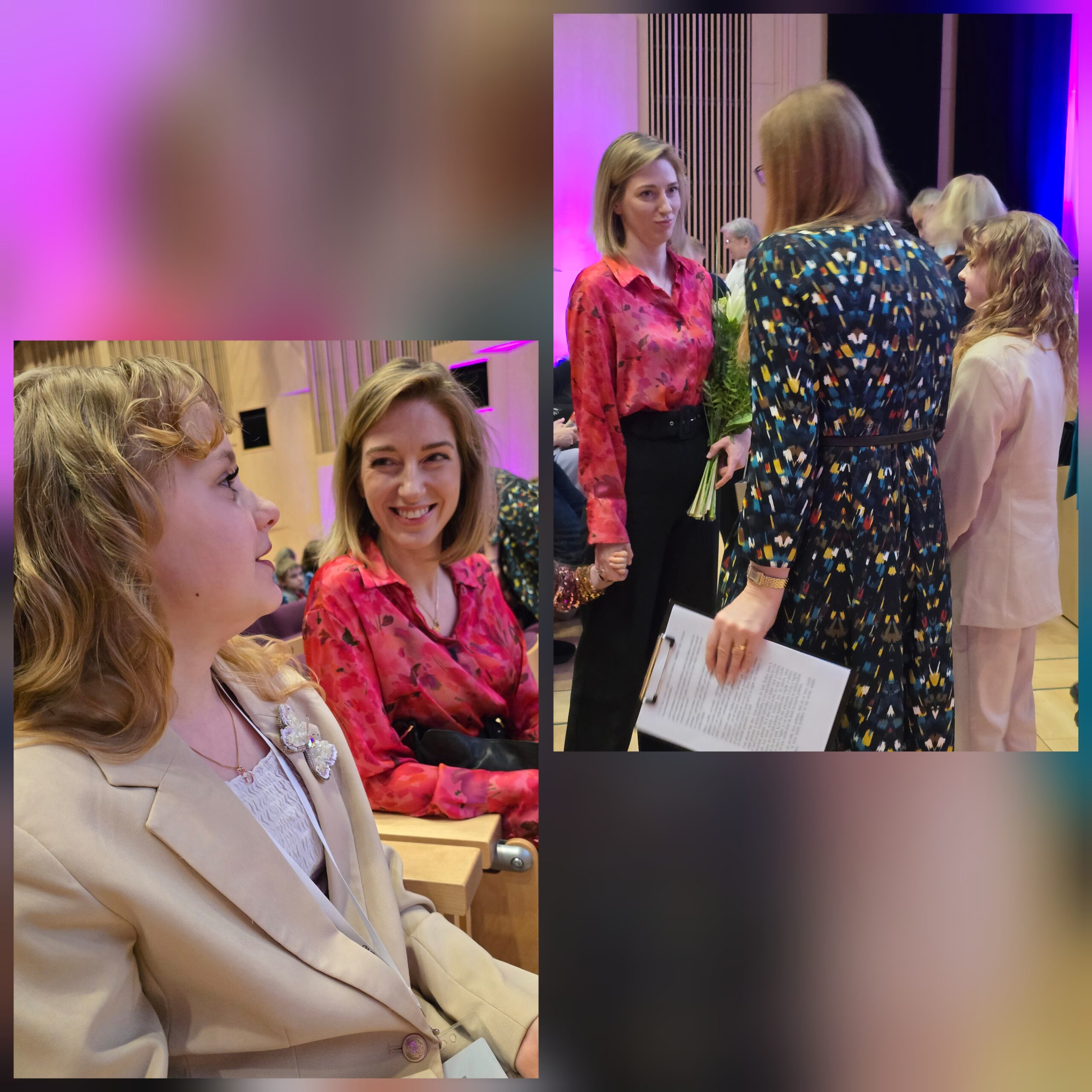 Lielo lasīšanas svētku pasākumā mūsu skolniecei bija brīnišķīga satikšanās arī ar LR kultūras ministri Agnesi Lāci. Pēc kultūras ministres uzrunas abas direktores (LNB direktore Dagnija Baltiņa un Bērnu direktore Grēta Gerda Lepere) roku rokā devās uz skatuves, lai atklātu šo svētku pasākumu. Arī Grēta uzrunāja visus svētku dalībniekus – gan klātesošos, gan tos, kuri šo pasākumu vēroja tiešraidē.