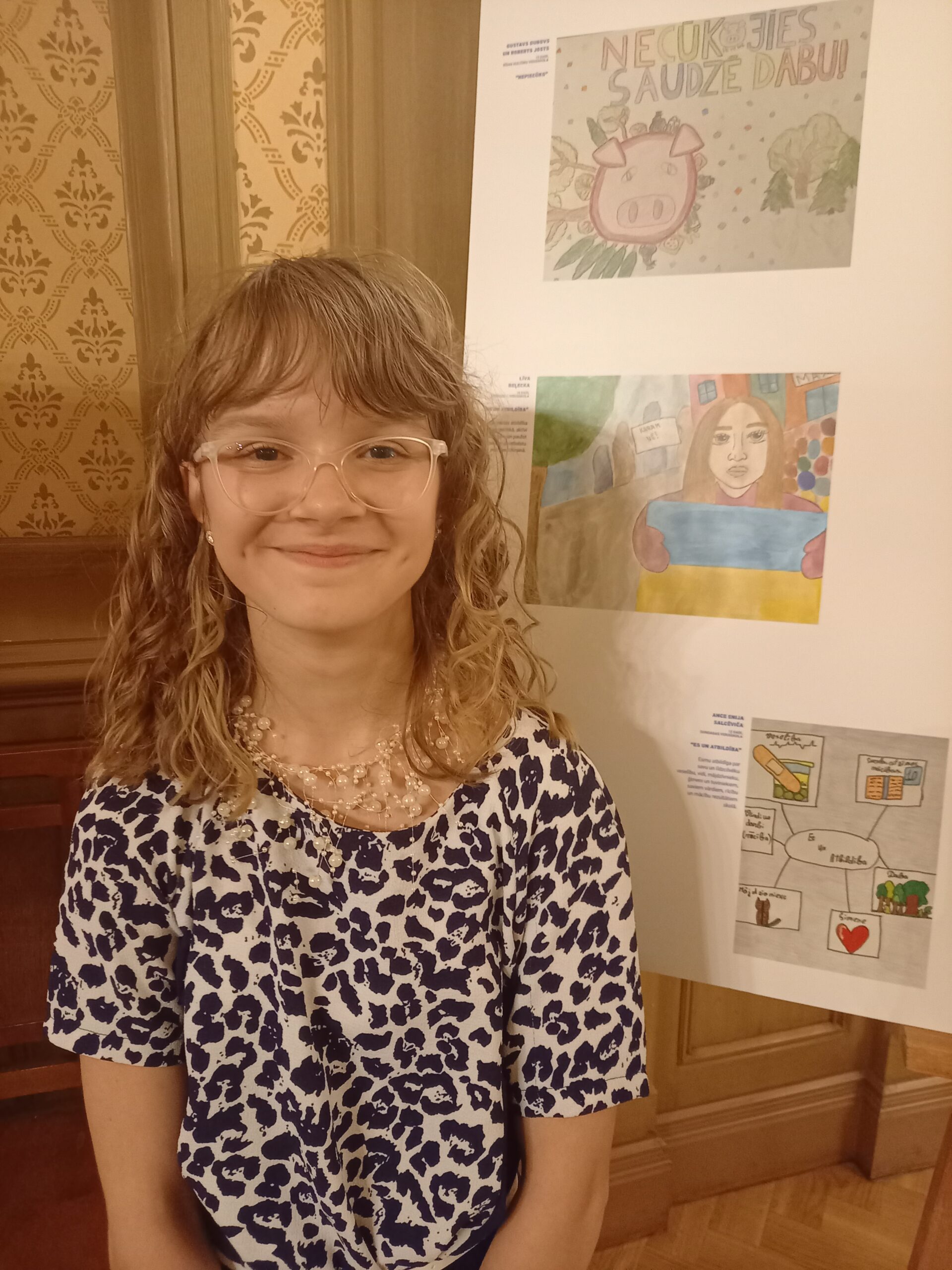 Kad arī mūsu skola saņēma aicinājumu piedalīties šajā konkursā, arī 5.a klases audzinātāja piedāvāja saviem audzēkņiem, kuri tajā brīdī bija sasnieguši 12 gadu vecumu, tajā piedalīties. Ance Enija Salcēviča atsaucās šim aicinājumam, izvēlējās un uzzīmēja apakštēmu „Es un atbildība”. Viņa atainoja to, par ko ikdienā izjūt atbildību, par ko, viņasprāt, cilvēkiem jābūt atbildīgiem. Darbs tika nosūtīts konkursam.