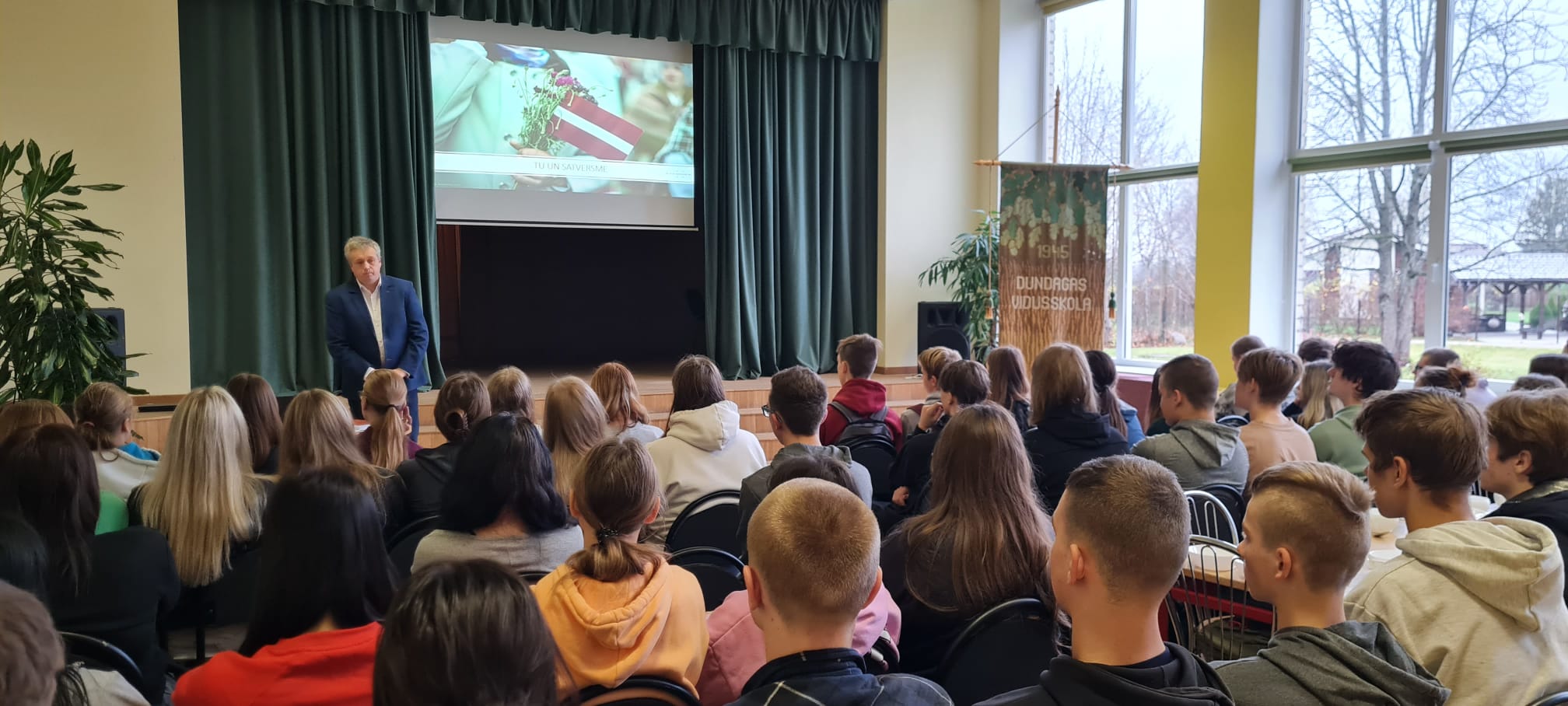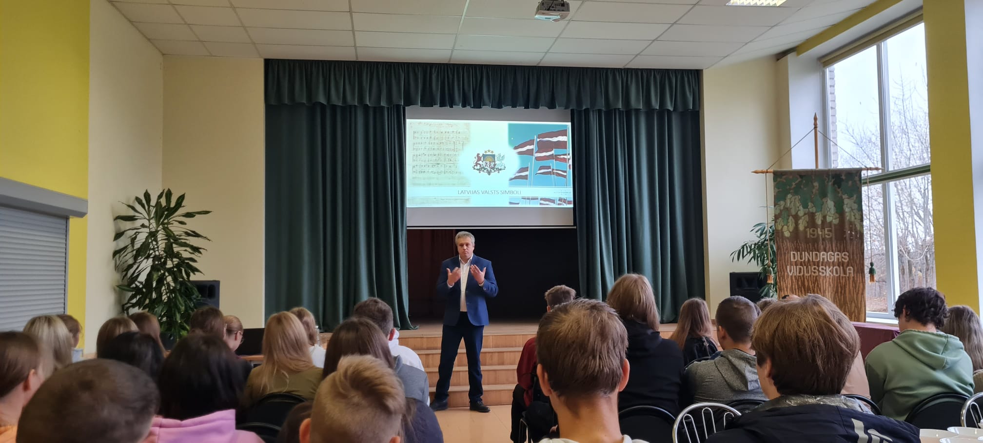 Šodien 9.-12.klases skolēni piedalījās Tieslietu ministrijas un Izglītības Zinātnes ministrijas izglītojošā nodarbībā “Es, Tu un Satversme”, kurā iepazinās ar valsts pamatlikumu, tā vērtībām un nozīmi mūsu ikdienā. Skolēni ieguva papildus zināšanas par Satversmi, likumdošanu, vēlēšanām, Latvijas pilsoņu tiesībām un pienākumiem, par Latvijas valsts simboliem.