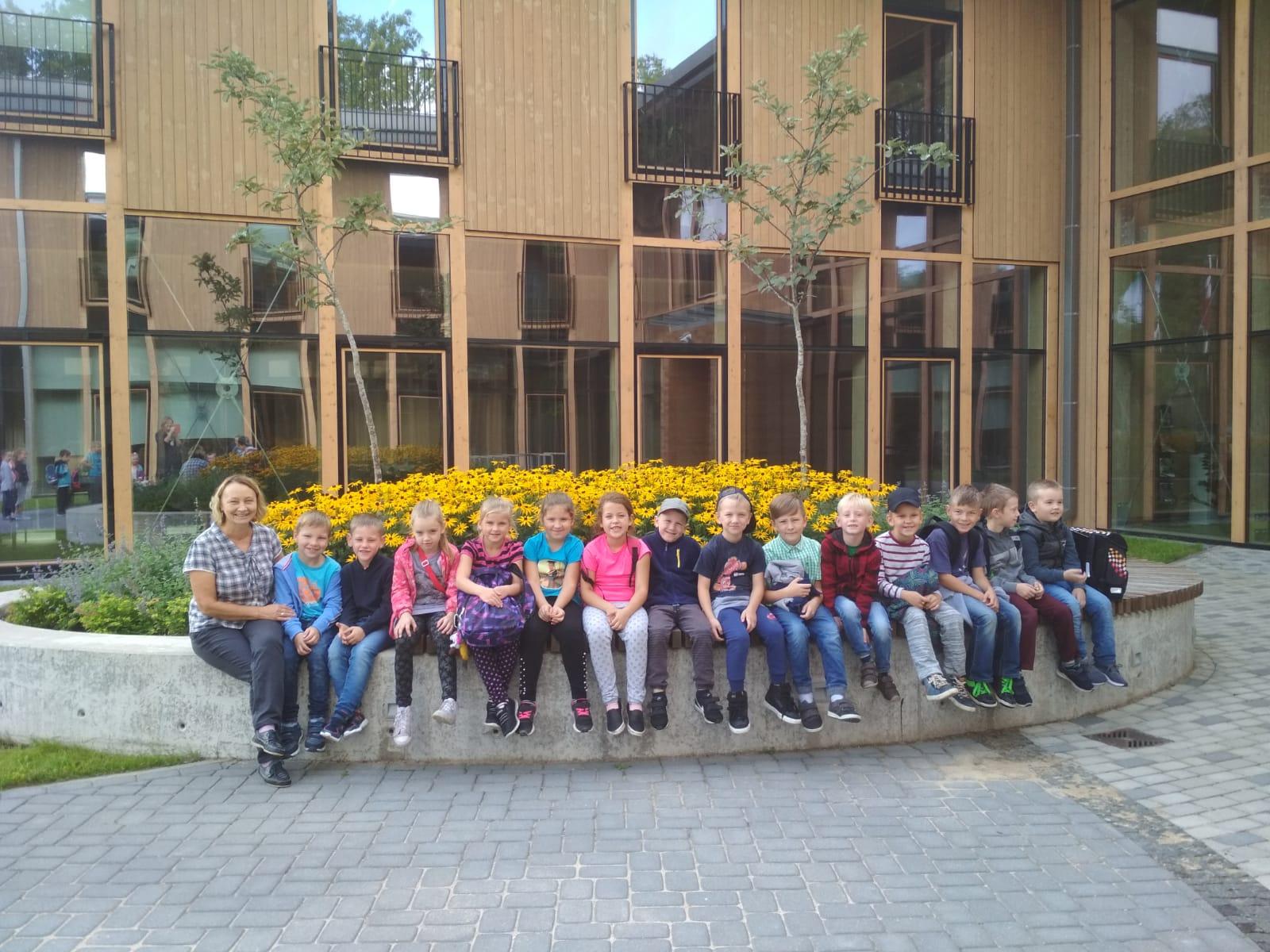 Klase pārgājiena laikā redzēja daudz dažādu objektu, bet izvēlējās vienu spilgtāko, kas veicina Dundagas novada pozitīvu uztveri – un tā ir „Latvijas Valsts meži” klientu centra teritorija.