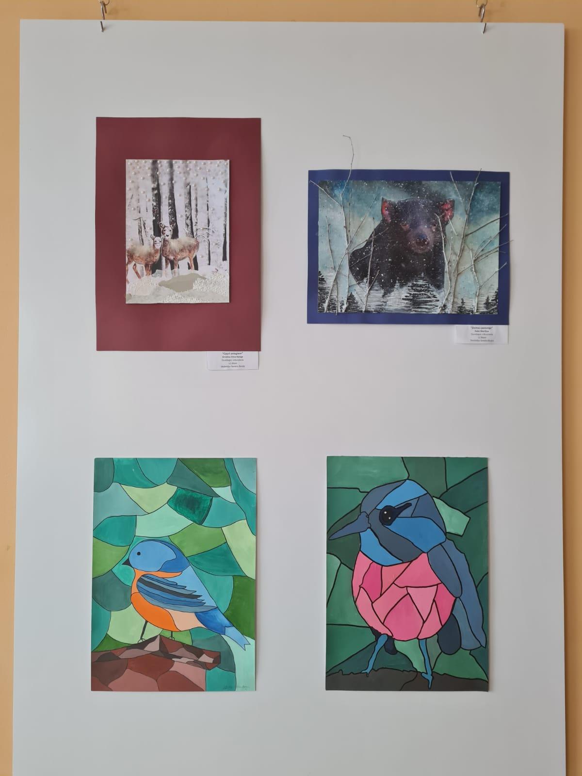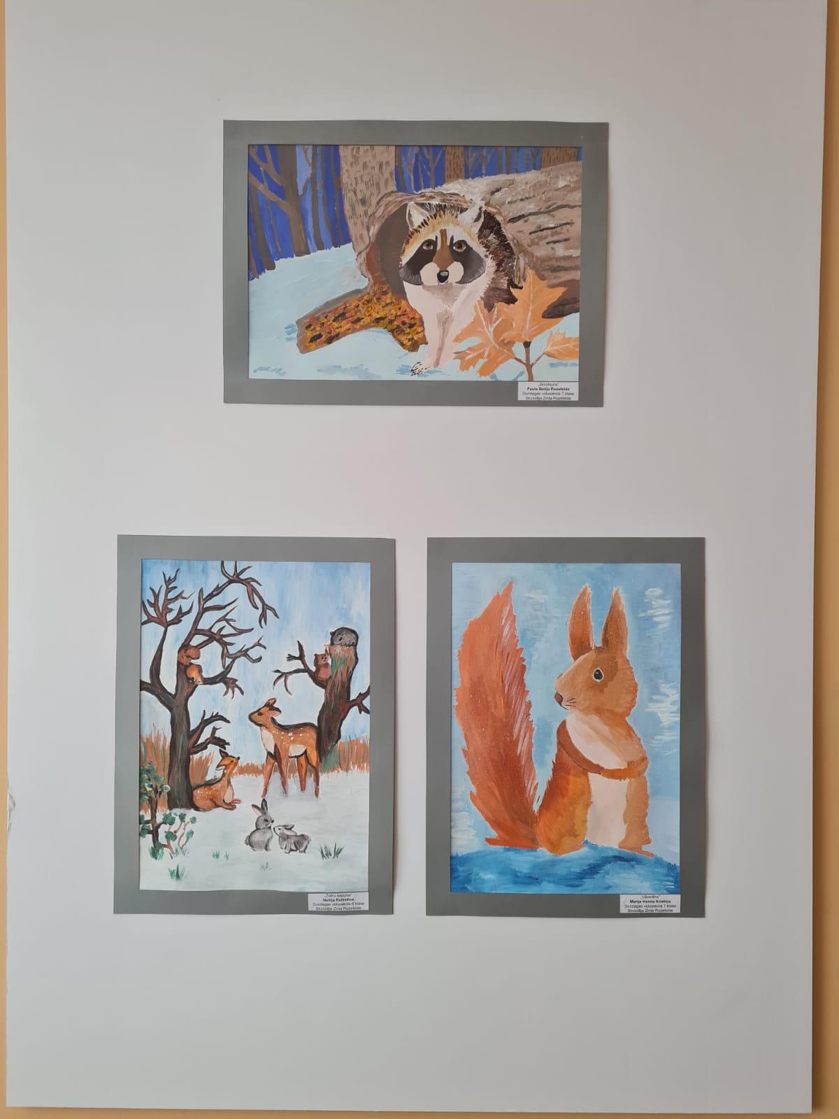 Šeit redzami arī darbi, kas 1.semestrī bija apskatāmi Talsu Bērnu un jauniešu centra izstādē „Zvēri ziemā”.
