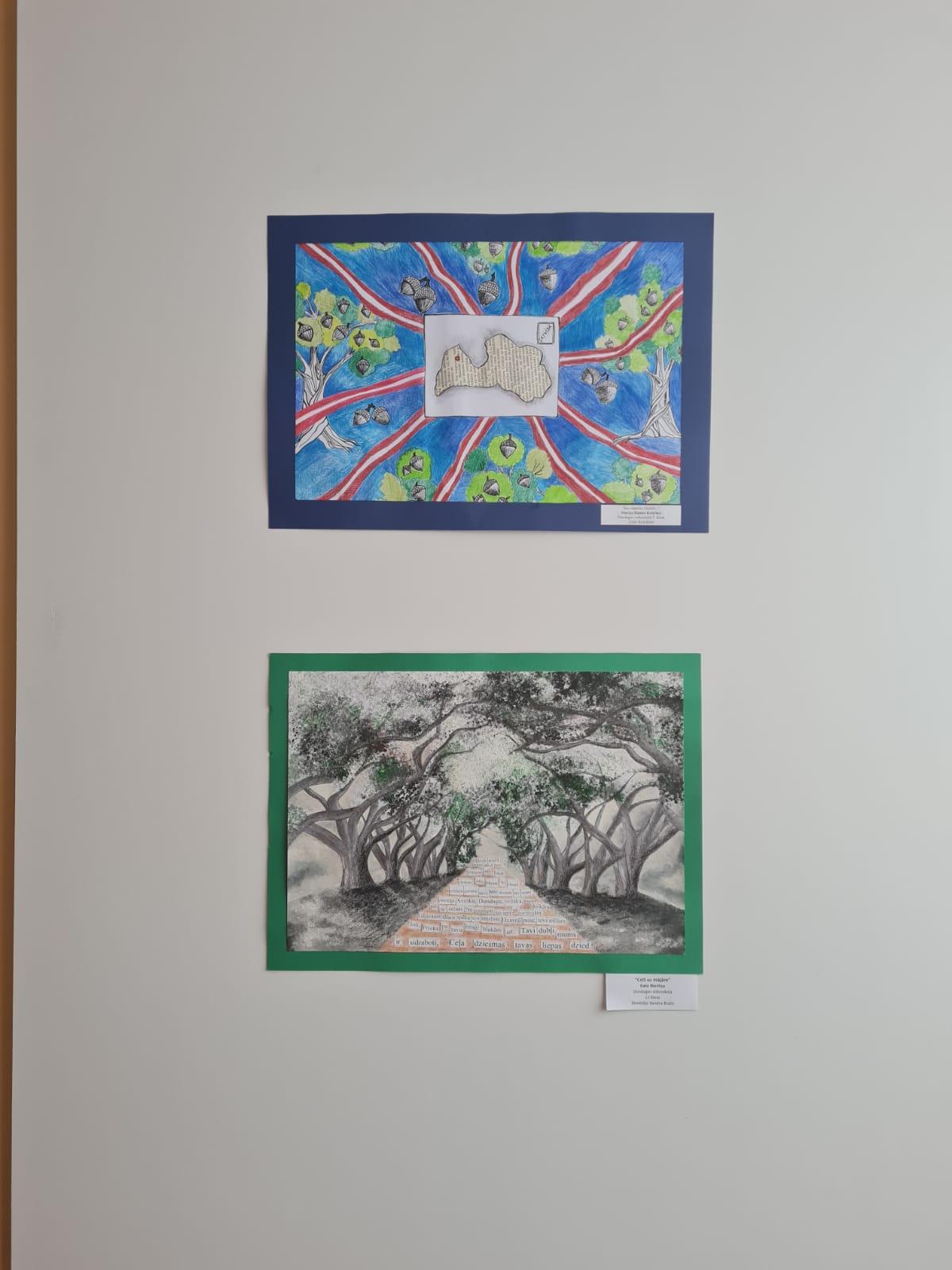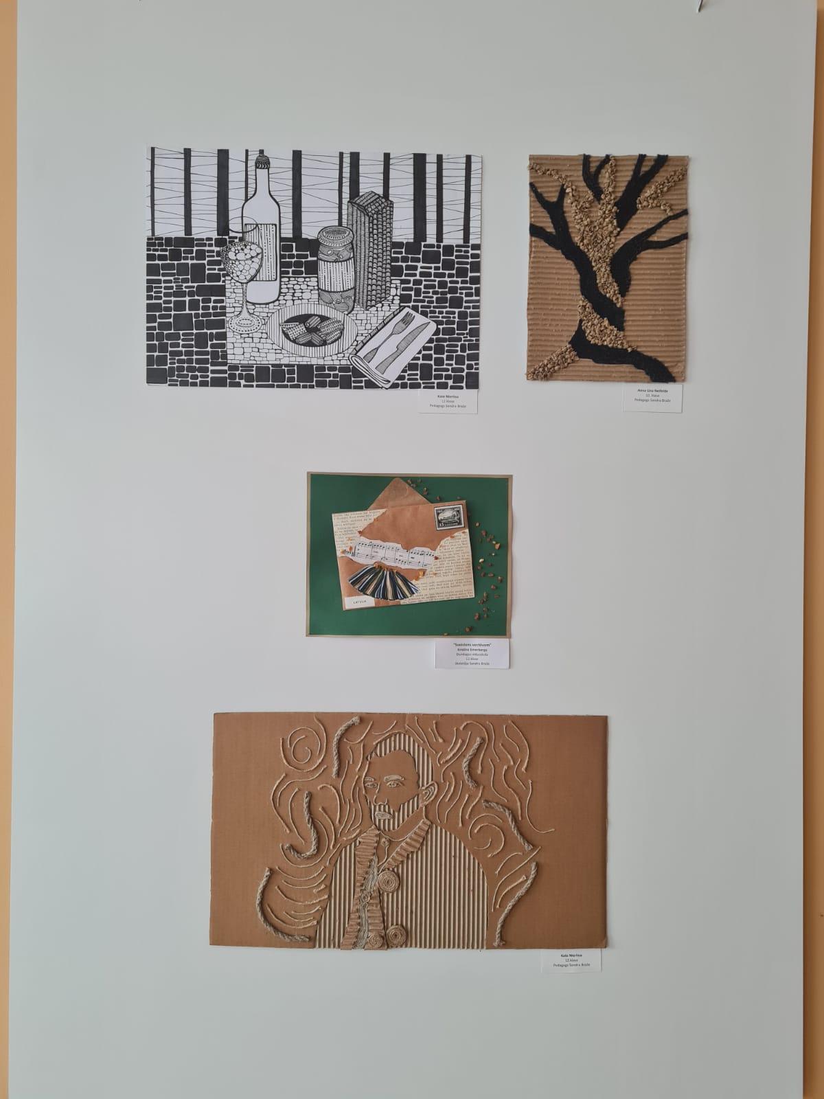 Izstādē izlikti arī darbi, kas 1.semestrī tapuši mācību procesā – vizuālās mākslas stundu laikā.