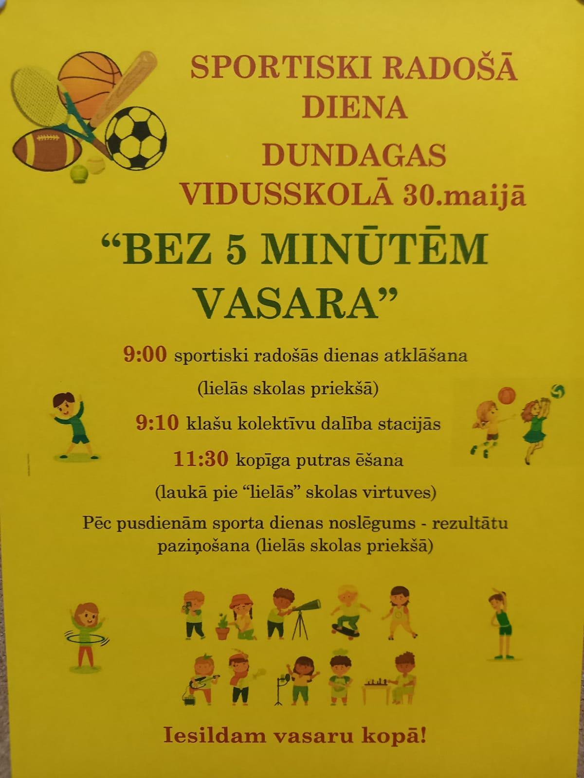 30.maijā Dundagas vidusskolā norisinājās sportiski radošā diena “Bez 5 minūtēm vasara”.