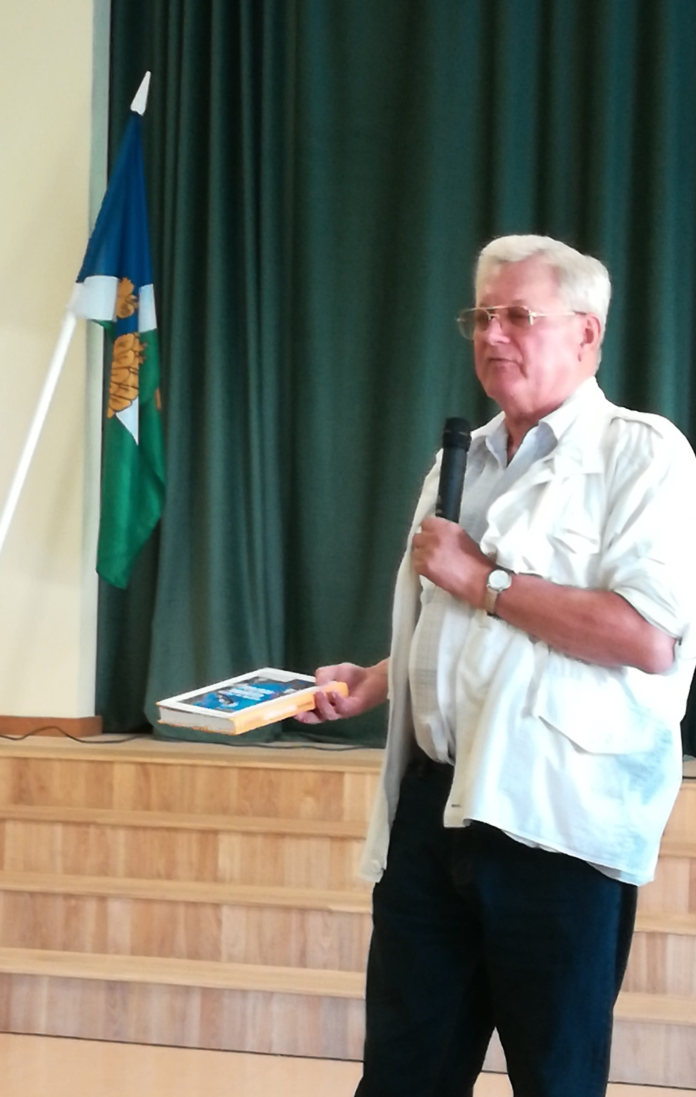 19.09.2018.skolas zālē 5.-7.klašu skolēni tikās ar rakstnieku un vēsturisko romānu autoru Jāni Ūdri.