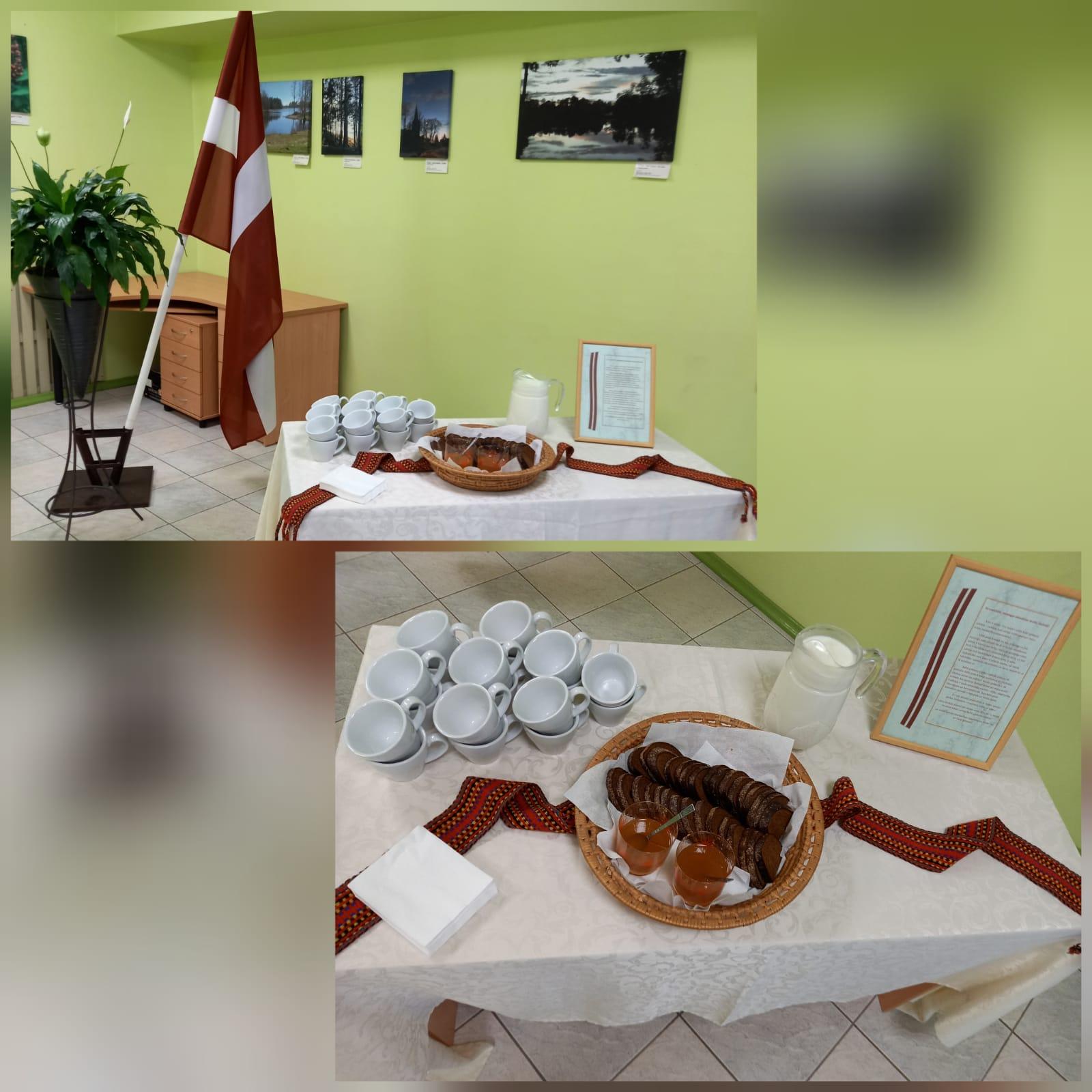 Katrai klasei pie balti klātā galda pirms cienāšanās tika nolasīts svētkiem veltīts apsveikuma teksts (to nolasīja klases audzinātājs), katra klase arī veltīja apsveikumu Latvijai svētkos – uzrakstīja uz lapas savu novēlējumu.