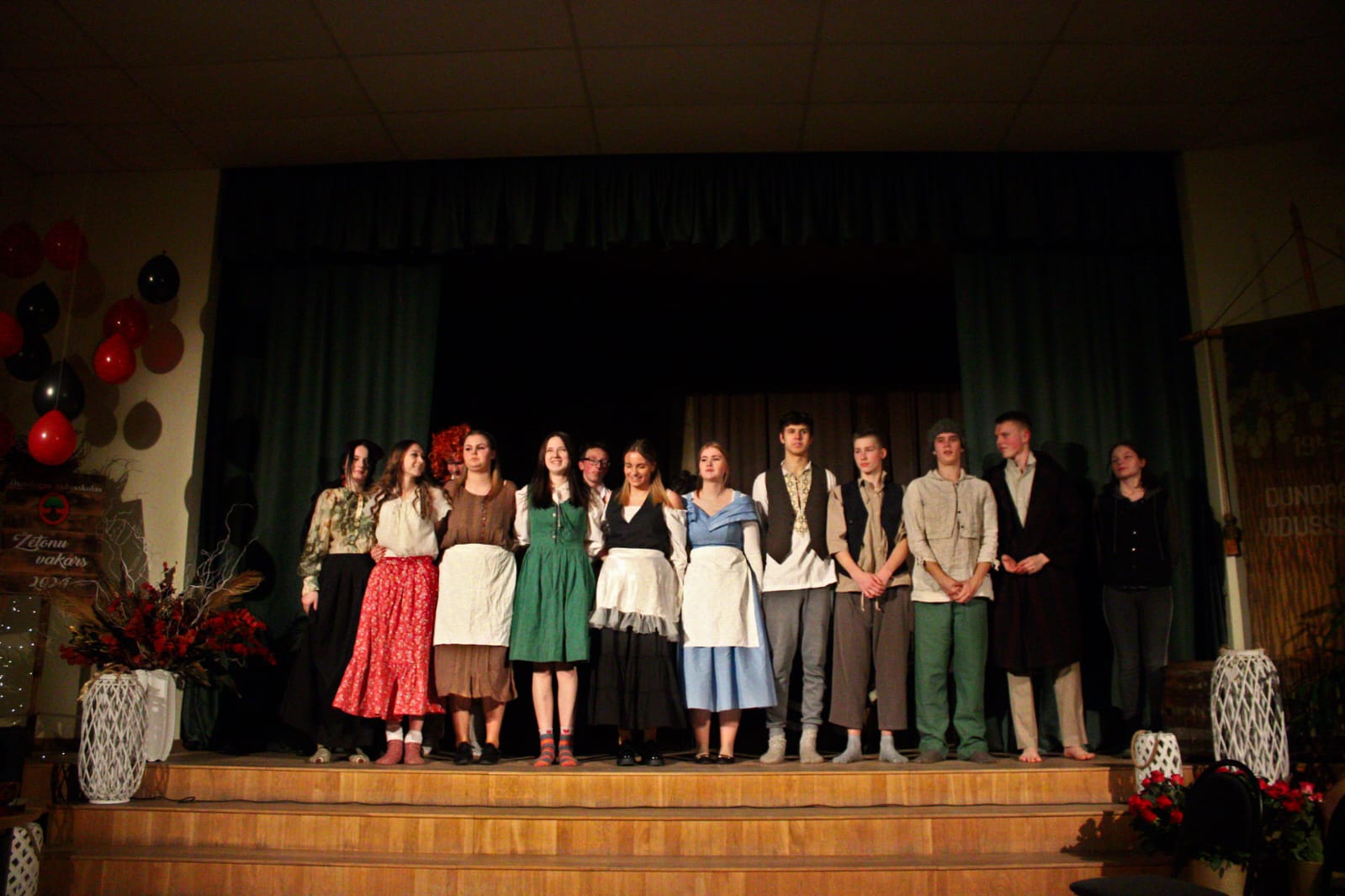 Jaunieši, kopā ar savu klases audzinātāju Noriku Segliņu, bija iestudējuši teātra izrādi “Žetonvakars, kas saiet sviestā”, kurā varējām redzēt divpadsmit skaistus, tik dažādu mirkļu un atmiņu piepildītus gadus!